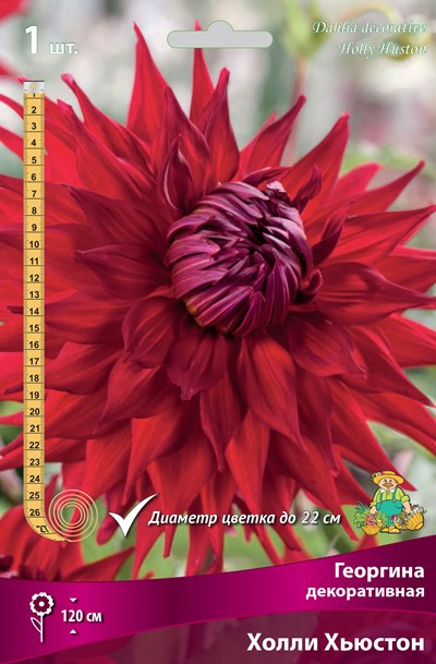 Холли Хьюстон - высота растения 120 см. Цветок огромный, диаметром 22 см, огненно-красный. Лепестки широкие с острыми кончиками.