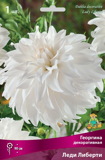 Леди Либерти - высота растения 90 см. Цветок махровый, диаметром 18 см, белый, с плоскими, заостренными краями лепестков.